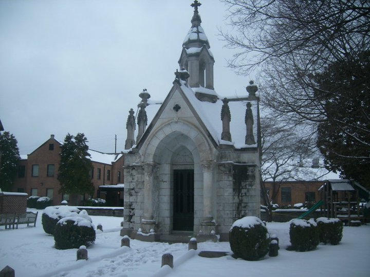 It is said on the day the church opened, John unlocked the front door and destroyed the only key to ensure anyone at any time could come into the church in remembrance of his beloved Nina. He incorporated an alcove in the church design, known as Nina’s niche, and directed that fresh flowers be placed there daily for her. The design of the church is very unique to the area, being one of the few Oxford Movement gothic architectural designs to remain wholly intact, with only slight modern additions of electricity, heating, and cooling. What’s even more unique than his cathedral design, however, is the next plan he created: a mausoleum that would house little Nina’s remains on the church grounds.